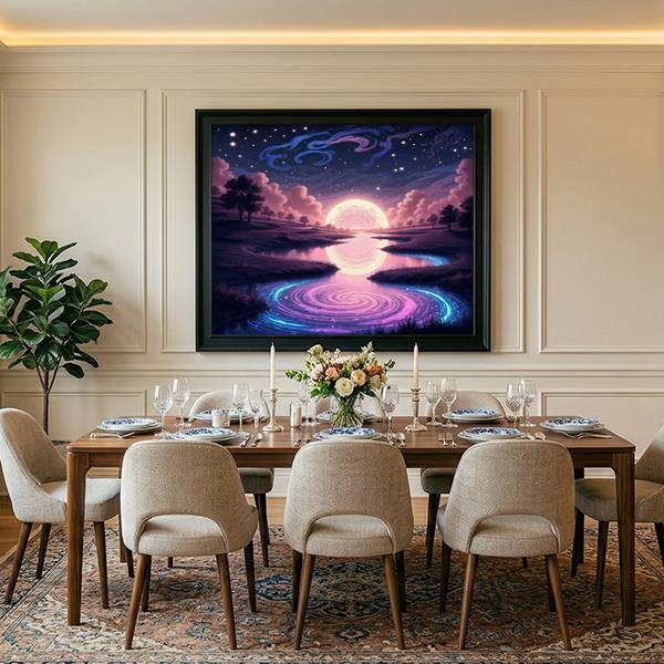 Drømmende natlandskab med måneskinn